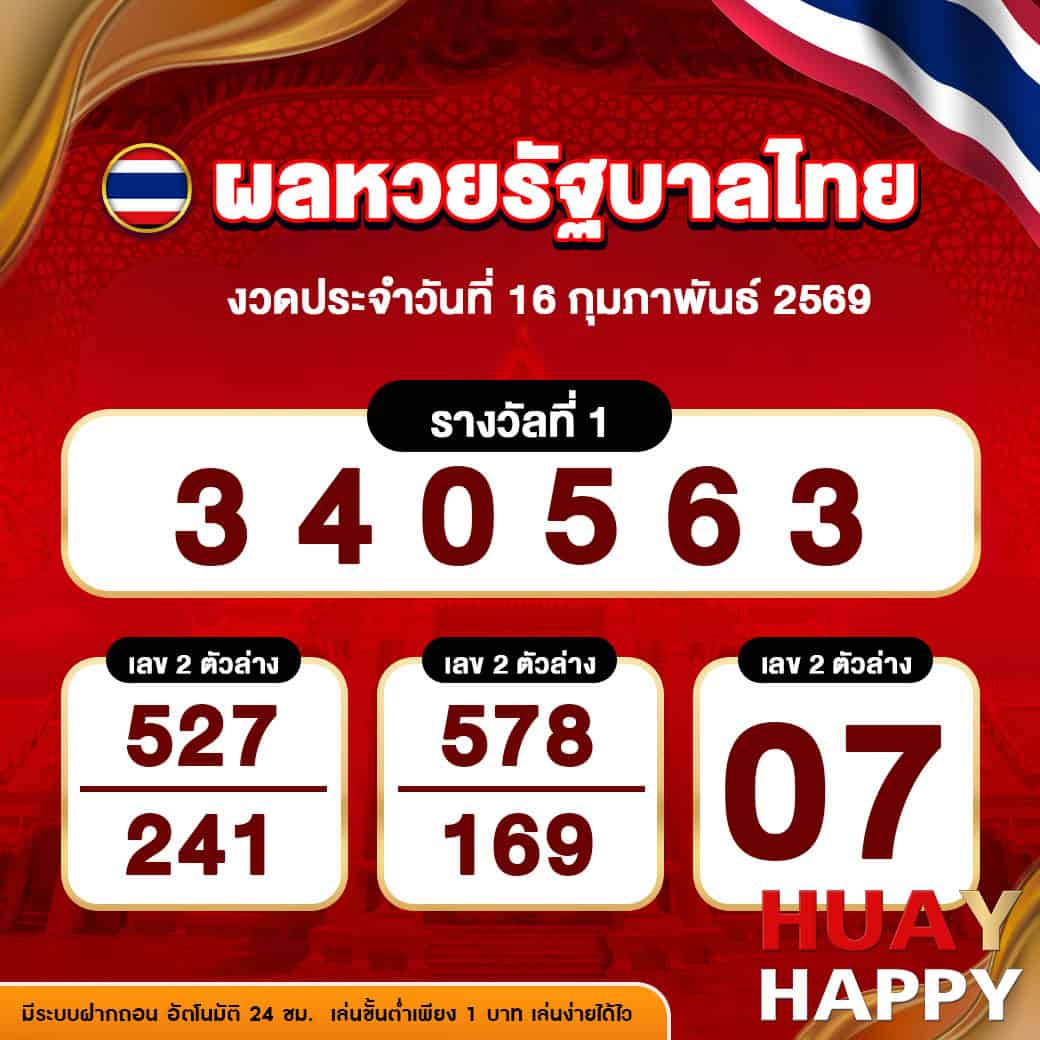 ผลหวยรัฐบาลไทย งวดวันที่ 16/2/2569