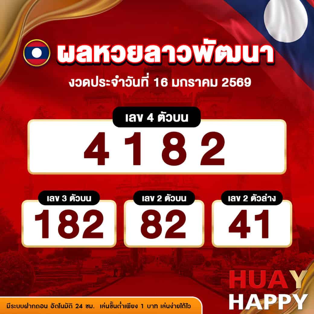 ผลหวยลาวพัฒนา งวดวันที่ 16 มกราคม 2569