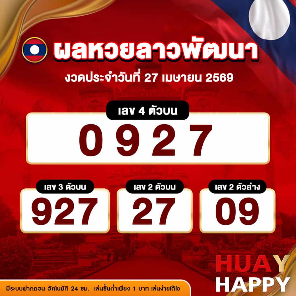 Home » ผลหวยย้อนหลัง » ลาว » พัฒนา งวดวันที่ 27/4/2569