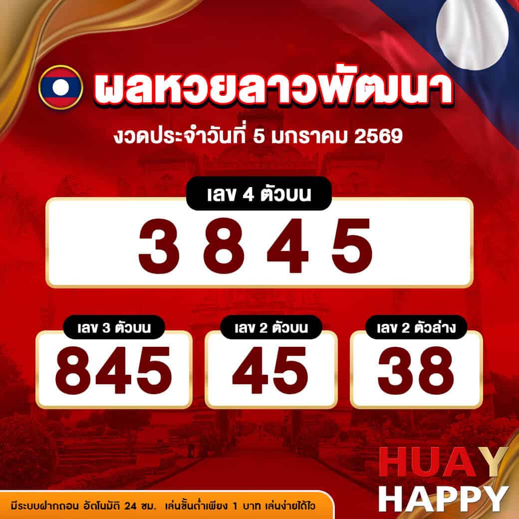 ผลหวยลาวพัฒนางวดล่าสุด ประจำวันที่ 5 มกราคม 2569 ผลการออกรางวัลที่สำคัญ มีดังนี้