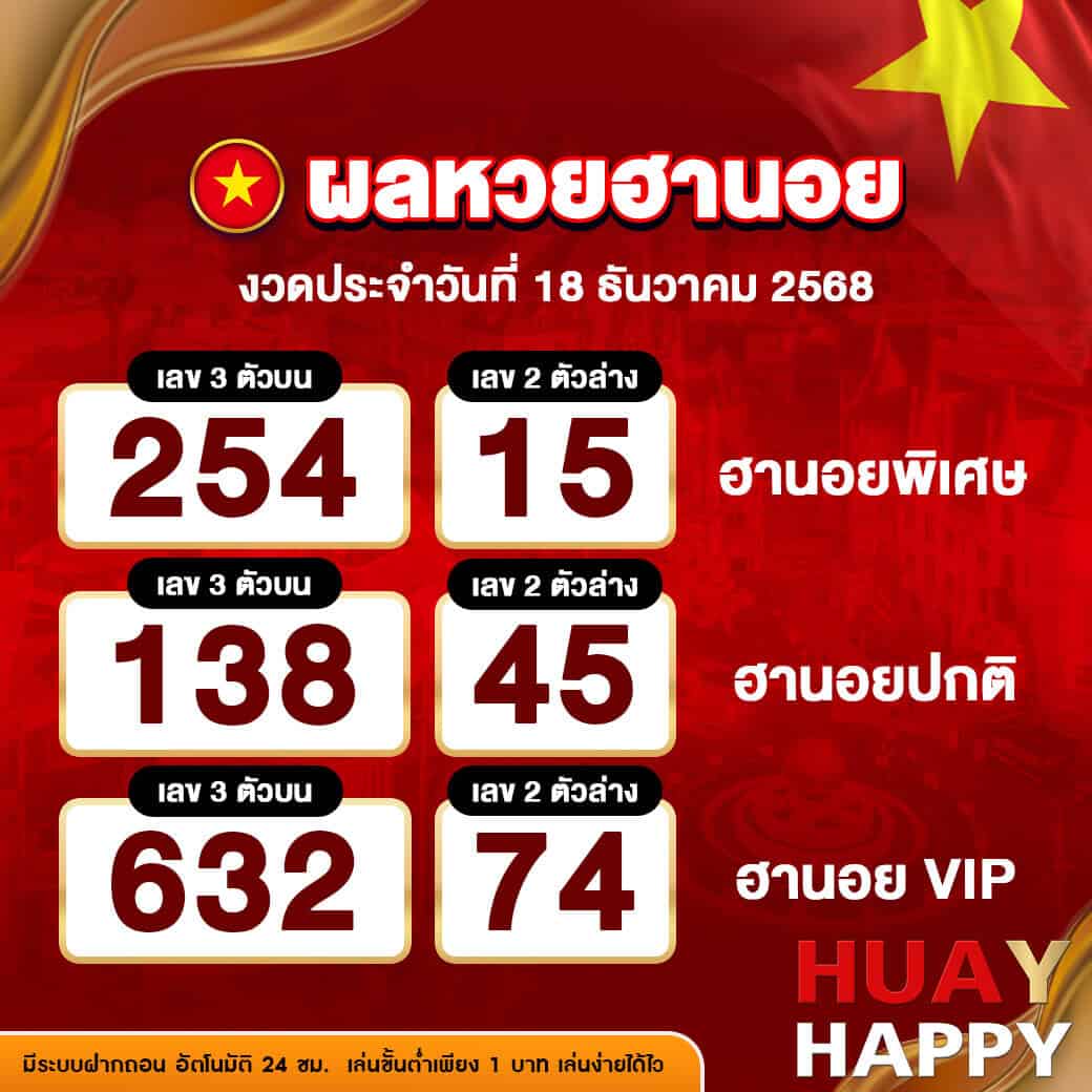 ผลหวยฮานอย งวดวันที่ 18 ธันวาคม 2568
